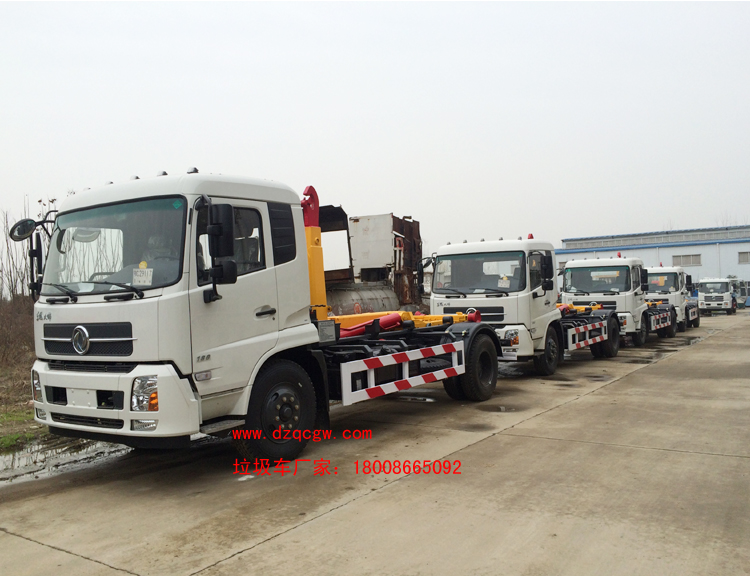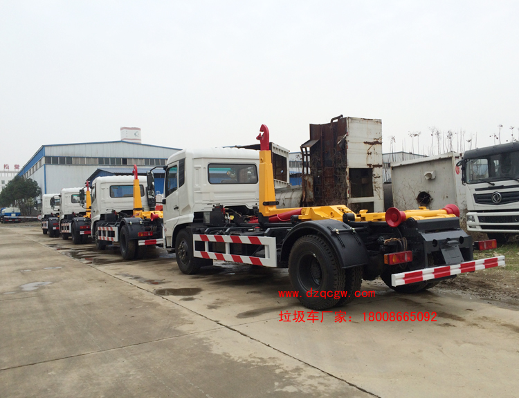 車輛名稱: 東風天錦勾臂垃圾車(8方) 整車型號: SZD5160ZXXD5(炎帝牌)
