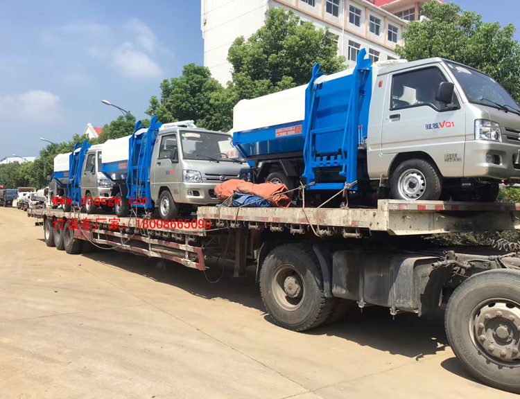 如圖所示,我公司發往南京的20臺福田馭菱掛桶式垃圾車試車驗車完畢后正式出廠,該批車供往南京下屬鄉鎮,均采用福田馭菱國四排放底盤,與環衛垃圾桶配合使用,用于生活垃圾的收集和運輸。
