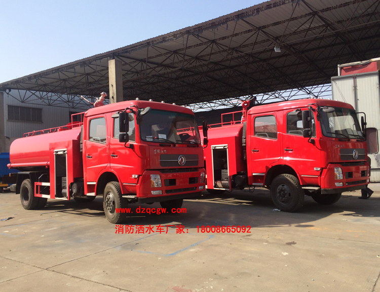 四臺(tái)東風(fēng)天錦國(guó)五消防灑水車生產(chǎn)完畢