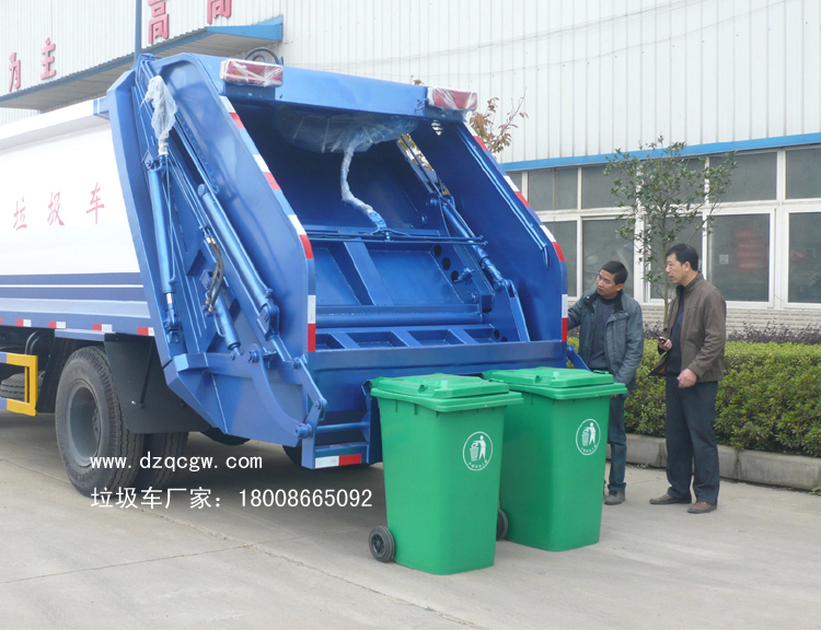 上裝說明: 廂體材料為武鋼優(yōu)質(zhì)炭鋼,厚度為邊5mm,廂體容積為13立方米。由裝料機(jī)構(gòu)、壓縮機(jī)構(gòu)、卸料機(jī)構(gòu)、油泵、油箱、控制閥等組成的液壓機(jī)構(gòu)組成。裝料機(jī)構(gòu)由支架、連桿機(jī)構(gòu)、凸輪、掛鉤等組成,在油缸作用下,將垃圾桶內(nèi)的垃圾自動(dòng)翻轉(zhuǎn)倒入料斗內(nèi)。新款有9支液壓缸制動(dòng),不帶副壓板,液壓控制操作系統(tǒng)為電動(dòng)控制和手動(dòng)控制。