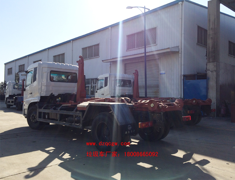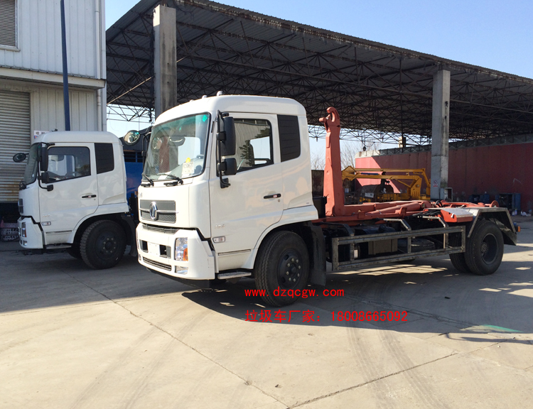 車輛名稱: 東風天錦勾臂垃圾車(10方) 整車型號: SZD5160ZXXD4(炎帝牌)