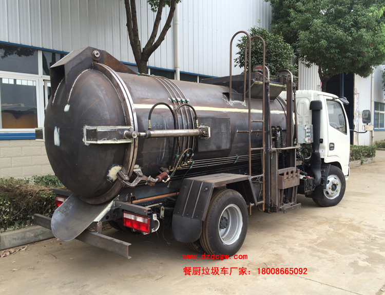 標準配置:圓形碳鋼罐體,罐體厚度5mm,拉桿提升機帶上蓋聯(lián)動;后蓋液壓開啟;罐體舉升自卸。選裝內(nèi)軒推鏟卸料,帶渣液分享功能。餐廚垃圾車可分罐式和廂式。