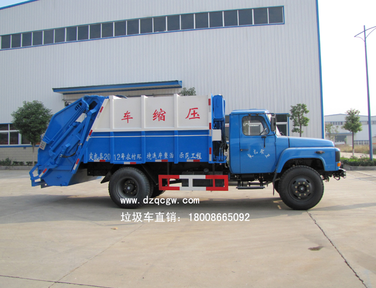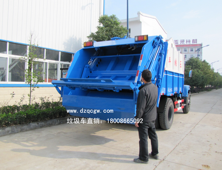 上裝說明: 廂體材料為武鋼優質炭鋼,厚度為邊5mm,廂體容積為8立方米。由裝料機構、壓縮機構、卸料機構、油泵、油箱、控制閥等組成的液壓機構組成。裝料機構由支架、連桿機構、凸輪、掛鉤等組成,在油缸作用下,將垃圾桶內的垃圾自動翻轉倒入料斗內。新款有9支液壓缸制動,不帶副壓板,液壓控制操作系統為電動控制和手動控制。