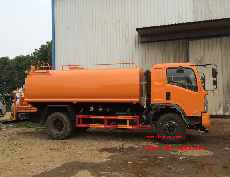 改裝部分:標配前沖、后灑、側噴、工作平臺、綠化高炮、自流閥、消防接口,輸水管3米2根,8噸以上罐體帶高位花灑2個,億豐泵或金龍泵,控制方式為手動。選裝氣動閥門控制;高位花灑,大鴨嘴,藥盤,罐體側面加裝萬向可調節噴頭,罐體后部壓塵噴灑裝置,兩個圓警燈或長警燈,LED箭頭燈,泵可選裝威龍泵或農藥噴霧裝置。