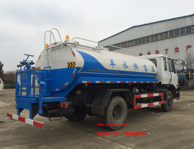 底盤說明:東風153G型豪華駕駛室,電動玻璃,軸距3950,4500,4700mm,六檔/陜齒小八檔變速箱,前橋3.6/5噸,后橋8/9/10噸,250雙層直通梁,9.00-20/10.00-20尼龍胎。外形長8600,8400,7500與軸距4700,4500,3950一一對應。罐體有效容積:9.45立方米。帶免征。 專用功能:該多功能灑水車適合于各種路面的灑水、噴霧、降溫、除塵、沖洗塵埃臟物,亦可用于園林綠化、市政環衛、路面養護及應急消防、運輸飲用水等。專用部分由罐體、水泵、球閥、輸水管道、灑水裝置等部件組成。水泵、取力箱、球閥均為國家定型產品,具有性能良好,工作可靠、壓力高、流量大、油耗低等特點。 改裝部分:標配前沖、后灑、側噴、工作平臺、綠化高炮、自流閥、消防接口,輸水管3米2根,8噸以上罐體帶高位花灑2個,億豐泵或金龍泵,控制方式為手動。選裝氣動閥門控制;高位花灑,大鴨嘴,藥盤,罐體側面加裝萬向可調節噴頭,罐體后部壓塵噴灑裝置,兩個圓警燈或長警燈,LED箭頭燈,泵可選裝威龍泵或農藥噴霧裝置。 |