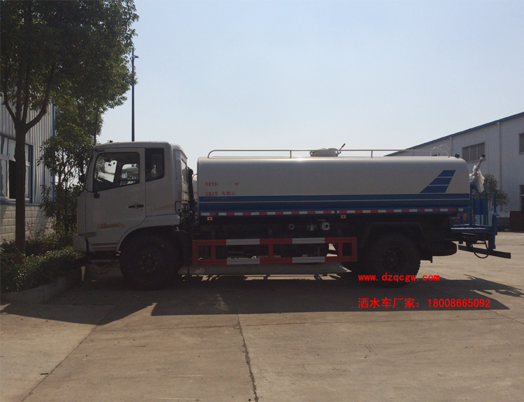 底盤說明:東風(fēng)嘉運(yùn)排半底盤,可采用3950,4500,4700mm軸距,玉柴或康明斯國五發(fā)動(dòng)機(jī),東風(fēng)6檔/陜汽8檔變速箱,前橋3.6/5噸,后橋8/9/10噸,9.00-20/10.00-20尼龍?zhí)ィ瑤BS,前下防護(hù)。罐體有效容積:9.24立方米。 專用功能:該多功能灑水車適合于各種路面的灑水、噴霧、降溫、除塵、沖洗塵埃臟物,亦可用于園林綠化、市政環(huán)衛(wèi)、路面養(yǎng)護(hù)及應(yīng)急消防、運(yùn)輸飲用水等。專用部分由罐體、水泵、球閥、輸水管道、灑水裝置等部件組成。水泵、取力箱、球閥均為國家定型產(chǎn)品,具有性能良好,工作可靠、壓力高、流量大、油耗低等特點(diǎn)。 改裝部分:標(biāo)配前沖、后灑、側(cè)噴、工作平臺(tái)、綠化高炮、自流閥、消防接口,輸水管3米2根,8噸以上罐體帶高位花灑2個(gè),億豐泵或金龍泵,控制方式為手動(dòng)。選裝氣動(dòng)閥門控制;高位花灑,大鴨嘴,藥盤,罐體側(cè)面加裝萬向可調(diào)節(jié)噴頭,罐體后部壓塵噴灑裝置,兩個(gè)圓警燈或長警燈,LED箭頭燈,泵可選裝威龍泵或農(nóng)藥噴霧裝置。 |