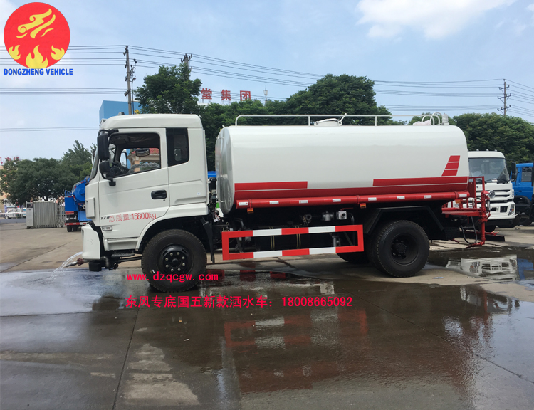 底盤說明:東風單橋新款駕駛室,可選用3950mm或4500mm軸距,國五康機170或康機190馬力發動機,9.00-20尼龍胎,3950mm軸距對應前橋3.6噸,后橋8噸,4500mm軸距對應前橋3.6噸,后橋9噸。斷氣剎,方向助力,ABS,電動玻璃,帶下防護。外形長8500,7500mm與軸距4500,3950mm一一對應。罐體有效容積:11.8立方米。運輸介質:丙酮水溶液。帶免征。 專用功能:該多功能灑水車適合于各種路面的灑水、噴霧、降溫、除塵、沖洗塵埃臟物,亦可用于園林綠化、市政環衛、路面養護及應急消防、運輸飲用水等。專用部分由罐體、水泵、球閥、輸水管道、灑水裝置等部件組成。水泵、取力箱、球閥均為國家定型產品,具有性能良好,工作可靠、壓力高、流量大、油耗低等特點。 改裝部分:標配前沖、后灑、側噴、工作平臺、綠化高炮、自流閥、消防接口,輸水管3米2根,8噸以上罐體帶高位花灑2個,億豐泵或金龍泵,控制方式為手動。選裝氣動閥門控制;高位花灑,大鴨嘴,藥盤,罐體側面加裝萬向可調節噴頭,罐體后部壓塵噴灑裝置,兩個圓警燈或長警燈,LED箭頭燈,泵可選裝威龍泵或農藥噴霧裝置。 |