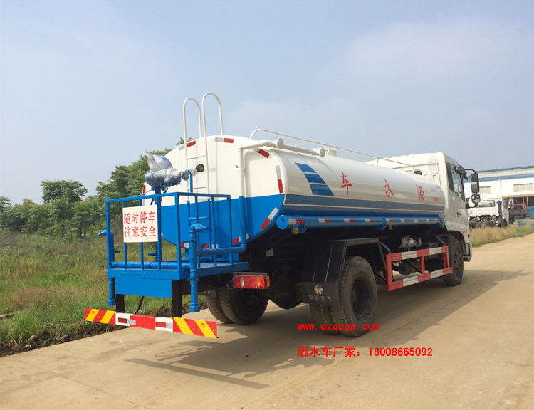 底盤說明:東風(fēng)天錦排半可前翻駕駛室,4500,4700,5000mm軸距,ISB180-40康機180馬力柴油共軌國四發(fā)動機,4.5噸前橋,9噸后橋,東風(fēng)6檔變速箱,9.00R20鋼絲胎,帶空調(diào),ABS。外形長/軸距/罐體長對應(yīng)關(guān)系為(mm):8900/5000/5650,8600/4700/5400,8400/4500/5200。罐體有效容積:11.2立方米。運輸介質(zhì):丙酮水溶液。帶免征。 專用功能:該多功能灑水車適合于各種路面的灑水、噴霧、降溫、除塵、沖洗塵埃臟物,亦可用于園林綠化、市政環(huán)衛(wèi)、路面養(yǎng)護及應(yīng)急消防、運輸飲用水等。專用部分由罐體、水泵、球閥、輸水管道、灑水裝置等部件組成。水泵、取力箱、球閥均為國家定型產(chǎn)品,具有性能良好,工作可靠、壓力高、流量大、油耗低等特點。 改裝部分:標(biāo)配前沖、后灑、側(cè)噴、工作平臺、綠化高炮、自流閥、消防接口,輸水管3米2根,8噸以上罐體帶高位花灑2個,億豐泵或金龍泵,控制方式為手動。選裝氣動閥門控制;高位花灑,大鴨嘴,藥盤,罐體側(cè)面加裝萬向可調(diào)節(jié)噴頭,罐體后部壓塵噴灑裝置,兩個圓警燈或長警燈,LED箭頭燈,泵可選裝威龍泵或農(nóng)藥噴霧裝置。 |