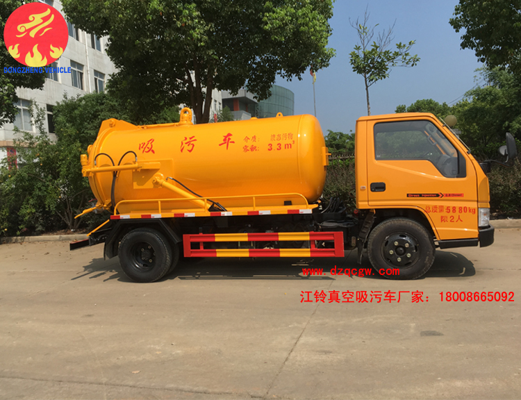底盤說明江鈴單排可翻轉駕駛室,國五江鈴115馬力柴油發動機,7.00鋼絲胎,油剎,五檔箱,后橋3.5噸,帶排氣制動,ABS。運輸品名:液體污染物,密度800千克/立方米,罐體有效容積:1.96立方米,罐體長度(mm)(直段長×直徑)2600×1000.