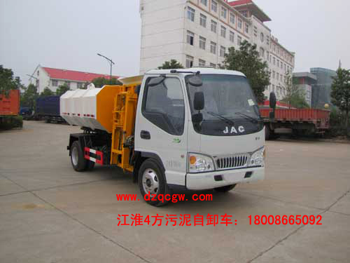 上裝配置:201不銹鋼材料制作,邊3底4,雙頂自卸,后門液壓開啟。容積4個方。該車裝備有提升機構、垃圾箱等專用裝置,用于裝運泥物.隨底盤選裝駕駛室。