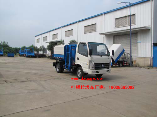 性能特點:垃圾車采用輕量化設計,運載量大、封閉性能好;是一種安全、節能、環保、高效的新型掛桶密封式結構的環衛專用車輛,可與全國統一裝垃圾的鐵桶、PCV桶配套使用,垃圾桶容量240L,有方桶、圓桶、帶蓋、不帶蓋多種可供選擇。