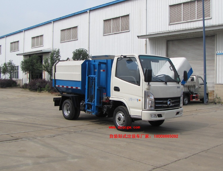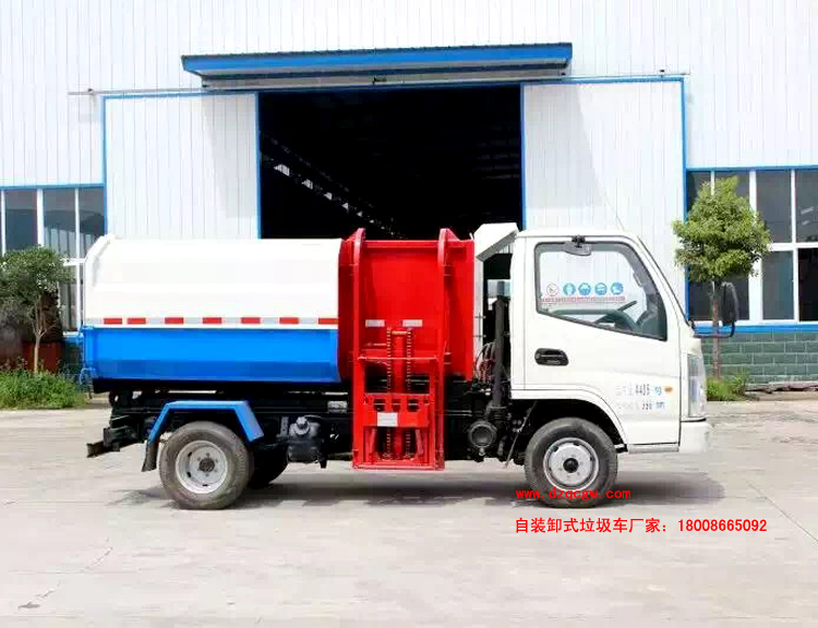 組成部分:上裝部分由密封式垃圾廂、液壓系統、操作系統組成。舉升油制缸(2支)垃圾廂可自吊上放下,上下一次工作循環時間≤50S。該掛桶式垃圾車的 特點是一個車能配幾十個垃圾廂,能實現一臺車與多個垃圾廂聯合作業,循環運輸,充分提高了車輛的運輸能力,特別適用于短途運輸,如環衛部門對城鎮垃圾的清 理、運輸等。